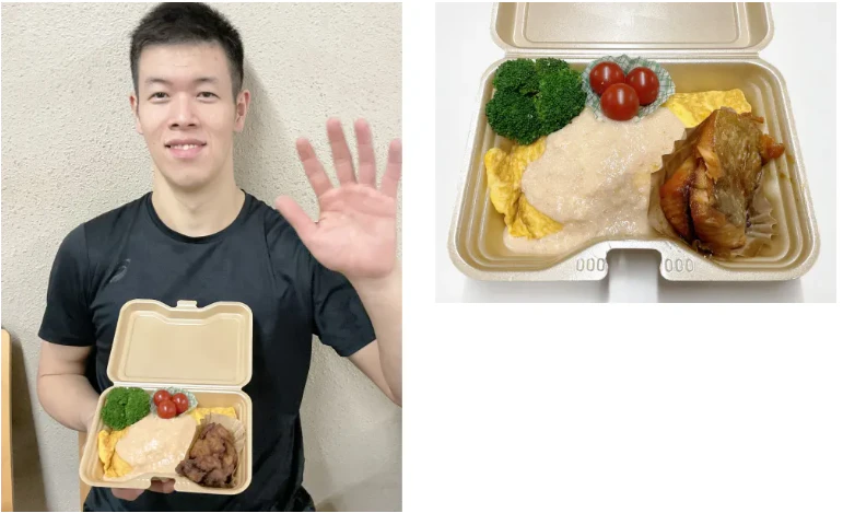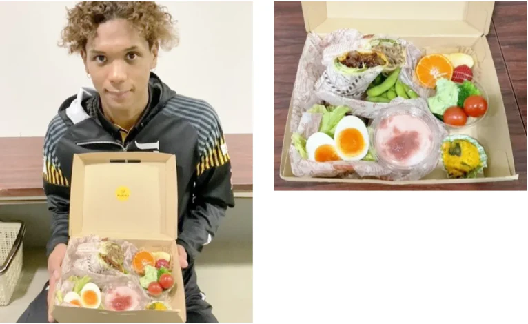 ![]() #23 トリー・デファルコ選手 キノコとチキンの塩麹焼き・豆カレー・漬物入り。 | ||
