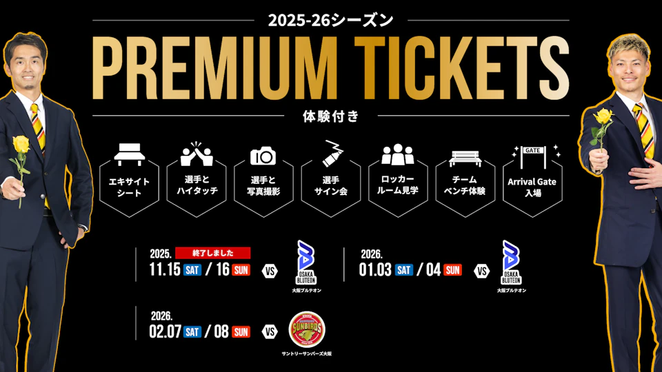 2025-26 大同生命SV.LEAGUE MEN レギュラーシーズン第9節 vs.大阪ブルテオンにて、『プレミアム体験付きチケット』を販売いたします!