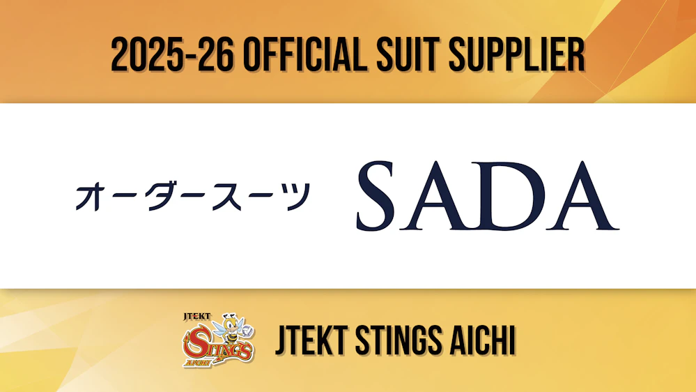 ジェイテクトSTINGS愛知は、株式会社オーダースーツSADA(所在地:東京都千代田区岩本町2-12-5 早川トナカイビル5階、代表取締役社長・佐田 展隆)と2025-26シーズンのオフィシャルスーツサプライヤー契約を更新いたしましたことを下記のとおりお知らせいたします。